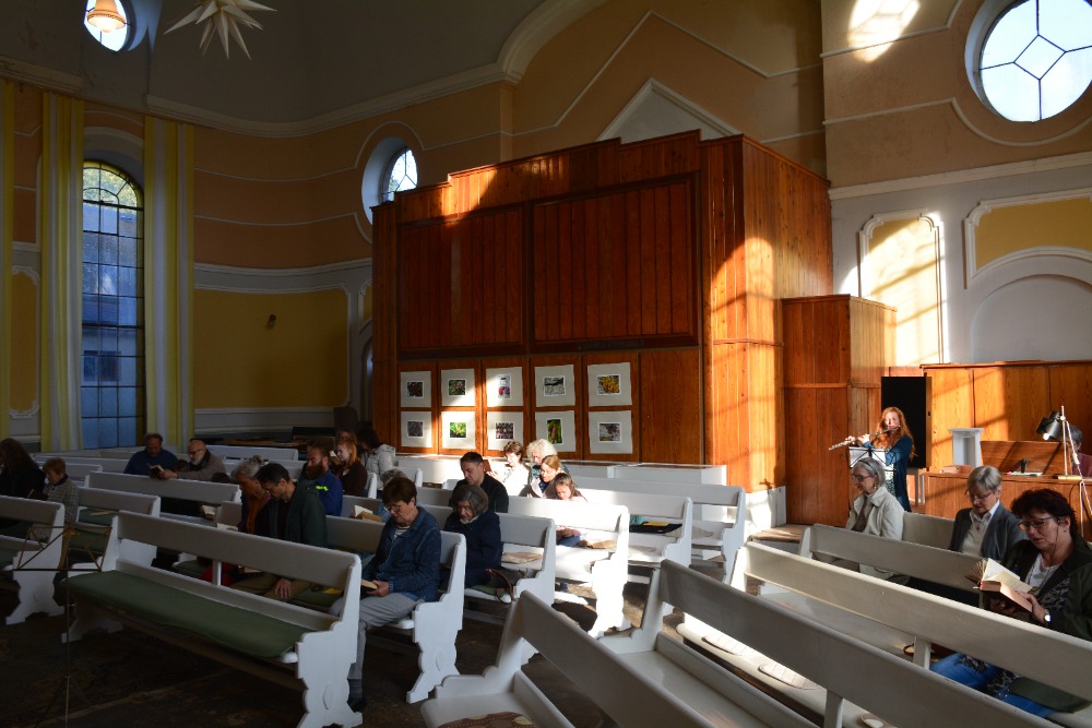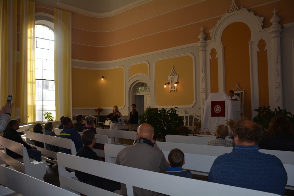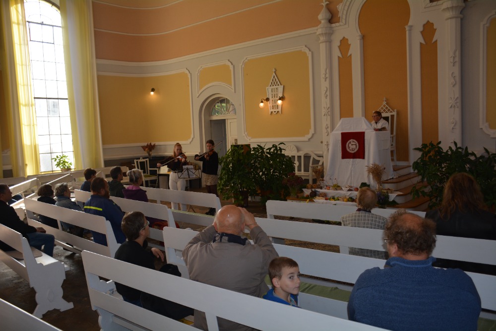 3.10.2021 jsme poděkovali za úrodu, oslavili jsme Den díkůvzdání. Kázáním posloužila ses. Hana Jalušková. Na housle zahrály solo malá Anetka Šírová a také 2 dívky , odchovanky br. Hlubučka. Na varhany doprovázela ses. Marcela Pallová, na flétnu ses. Hana Friede. Byl to hezký zážitek. Jako obvykle byla pod kazatelnou výstavka plodů přírody i lidských rukou. Po shromáždění byla vysluhována Svatá večeře Páně. Bohoslužby se účastnilo 27 lidí. Později jsme poseděli u pohoštění, které připravil br. Hlubuček a členky sboru. Bylo vidět, že řada členů se nějakou dobu neviděla, hodně se debatovalo, plánovalo. Byl to příjemný slunečný den, plný dojmů z křesťanského společenství.